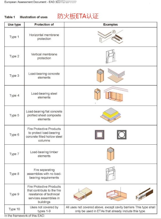 Type 10:与防火分区或防火性能保护有关的其他预期用途